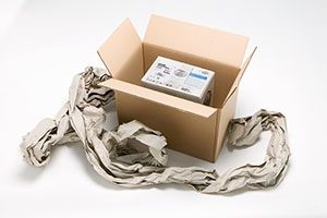 U kunt van bijvoorbeeld krantenpapier proppen vouwen en deze in een doos om het apparaat doen, zoals op onderstaande afbeelding.